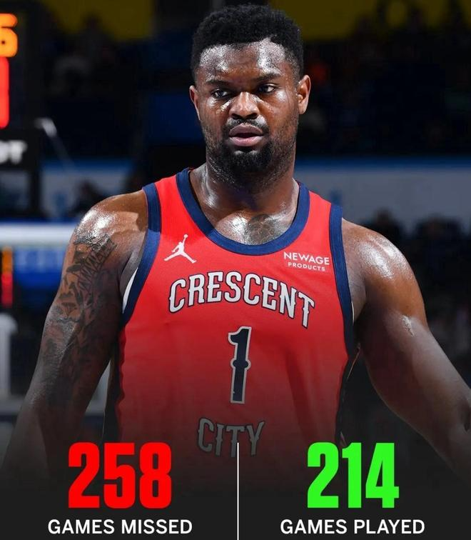 问题来了。刚过去的这个2024-25赛季,锡安打了多少场?30场。