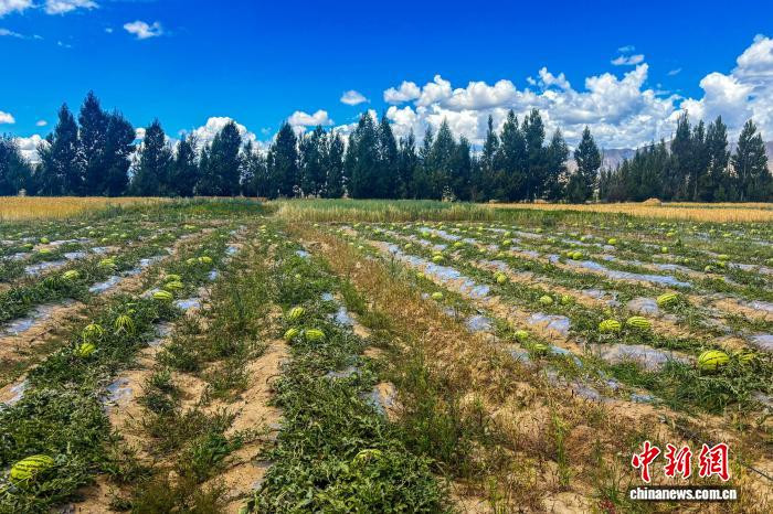 图为9月6日,西藏日喀则桑珠孜区年木乡罗林村露地种植的西瓜。(日喀则市融媒体中心供图)