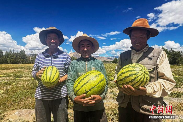 中新网拉萨9月8日电(记者江飞波)“今年我们村种了17亩露地西瓜,平均亩产约4000斤,仅靠这一项,估计年底可以为全村每户增加现金分红几千元(人民币,下同)。”9月8日,西藏日喀则桑珠孜区年木乡罗林村党支部书记才旺群培介绍,村里的高海拔露地西瓜规模化种植首次迎来丰收。