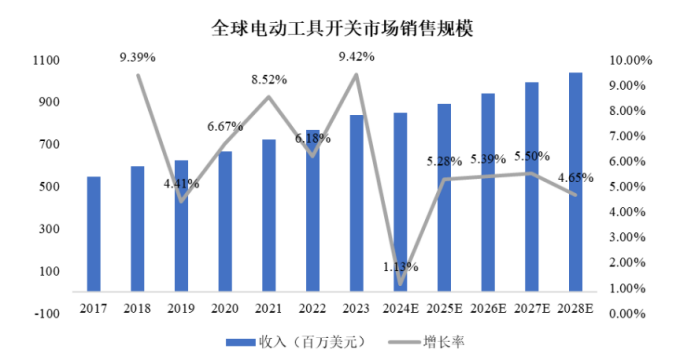 资料来源:恒州诚思《2022-2028全球电动工具开关行业调研及趋势分析报告》、QYResearch《全球电动工具开关市场研究报告2024-2030》