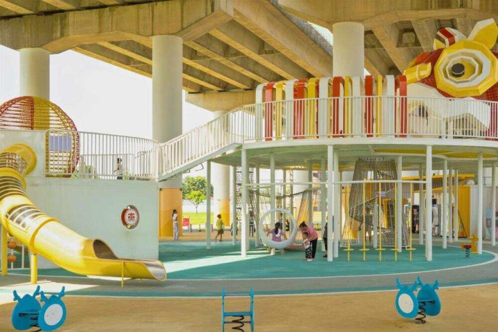 东涌通过“轻量化改造+功能复合”模式,活化桥底、荒地等闲置区域,建设多层次体育设施。西樵水道特大桥下约9000㎡空间被改造为马克村桥下公园,内含健身、休闲、文化区域及游客中心、停车场等,自5月开放以来日均客流超1万人次。