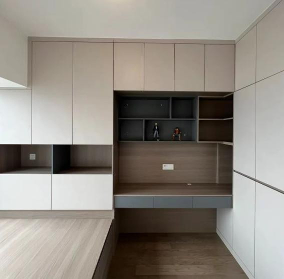 ③、榻榻米的安装。在家里的乳胶漆全部刷完以后就可以安装衣柜,安装榻榻米。安装榻榻米,一般与柜子一起安装,这样整体效果会更好整体效果会更好。